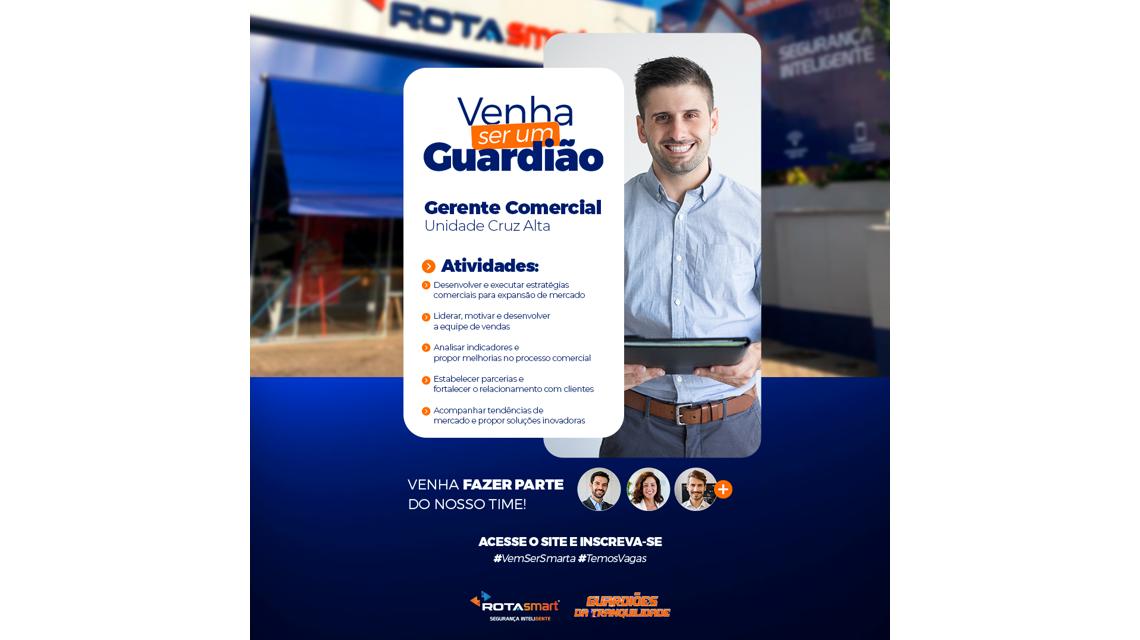 A ROTA SMART está em busca de um(a) Gerente Comercial para liderar nossas operações comerciais, impulsionar resultados e fortalecer o relacionamento com nossos clientes na cidade de Cruz Alta/RS. 💡